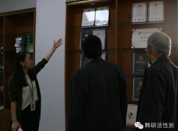 我司外貿總監Jane 帶領來訪的客戶們參觀了我司的證書展示區(各種認證及專利)、產品展示區、研發實驗室、蜂窩活性炭生產車間、椰殼活性炭生產車間等等,讓他們更加真真切切地感受到韓研強大的技術研發及生產能力。