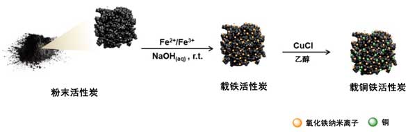 圖1:Cu-Fe3O4-活性炭的逐步合成。