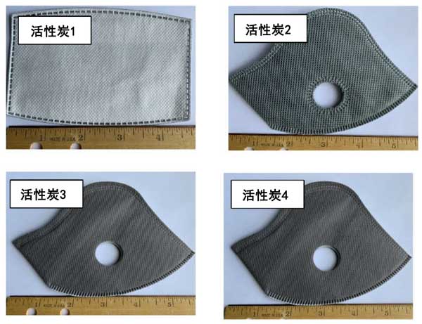 圖1:本研究使用了四種類型的帶有活性炭層的面罩襯墊。每張圖片代表不同的濾芯。