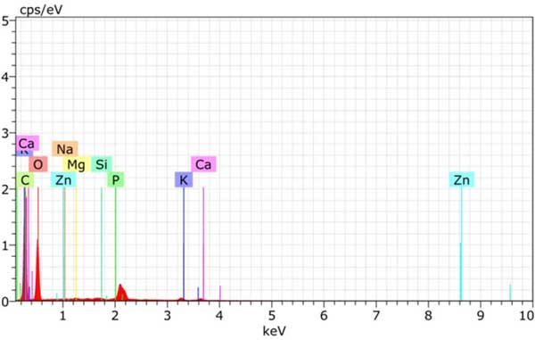 揮發(fā)物含量直接在自動近似分析儀中測量。當(dāng)爐油樣品燃燒完全時,不可燃?xì)埩粑锿ㄟ^灰分含量反映出來。在此過程中使用可承受300至400℃溫度的高溫馬弗爐。在空氣中存在氧氣的情況下,某些物質(zhì)(如水和其他揮發(fā)性元素)會燃燒,而其他物質(zhì)(包括有機(jī)分子)會蒸發(fā)。通過比較灰化前后樣品的重量可以計算出樣品中的灰分含量。固定碳的計算方法是從100中減去揮發(fā)性物質(zhì)的百分比、水分含量和灰分含量。活性炭的堆積密度是借助密度計。用能量色散X射線分析法分析活性炭的化學(xué)成分圖2。活性炭的EDAX分析具有由C、O、Zn等組成的元素。