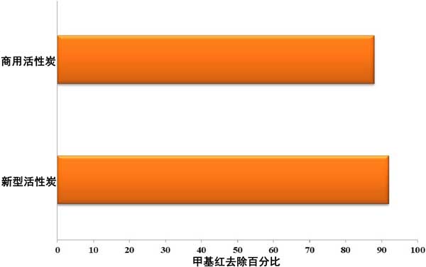 經(jīng)過批量吸附測試數(shù)據(jù)后,將新型活性炭的結(jié)果與當(dāng)?shù)乜捎玫纳逃没钚蕴窟M(jìn)行了比較。圖4表示與活性炭的比較實驗數(shù)據(jù)。