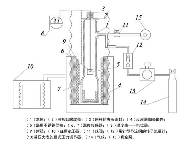 我們使用了基于堿金屬氟化物的低共熔混合物,其組成為mol%:LiF(46.5)–NaF(11.5)–KF(42.0)(FLiNaK)。其質量通過導數儀的熔化溫度(Tm=454℃)檢查。前面詳細描述了使用FLiNaK的活性炭進行吸附的設置方案。將干燥的活性炭置于帶孔的特殊金屬銅籃中,并浸入熔鹽中。實驗在650℃靜態條件下進行,吸附時間為1.5h。裝有活性炭的籃子定期進行垂直平移運動,使鹽與碳混合。取下籃子后,檢測碳鹽共晶中目標元素的含量。Th、U和Nd的濃度通過以下程序分析。含有碳和低共熔物的樣品用硫酸處理以去除HF。然后,在蒸發后,將它們用水稀釋,并根據程序使用分光光度計在650nm的波長下使用鹽酸中的偶氮砷III進行分析。活性炭在富集金屬鈉之前,為了增加其表面對金屬的親和力,在200℃的空氣中進行干燥,在真空和600℃的惰性氣體中進行熱處理。通過圖1所示的裝置制備富含金屬鈉的活性炭樣品。