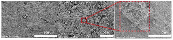圖2:所獲得的電極在不同分辨率、不同放大倍數下的SEM圖像。
