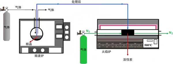 圖1:微波處理活性炭制造實驗裝置示意圖。